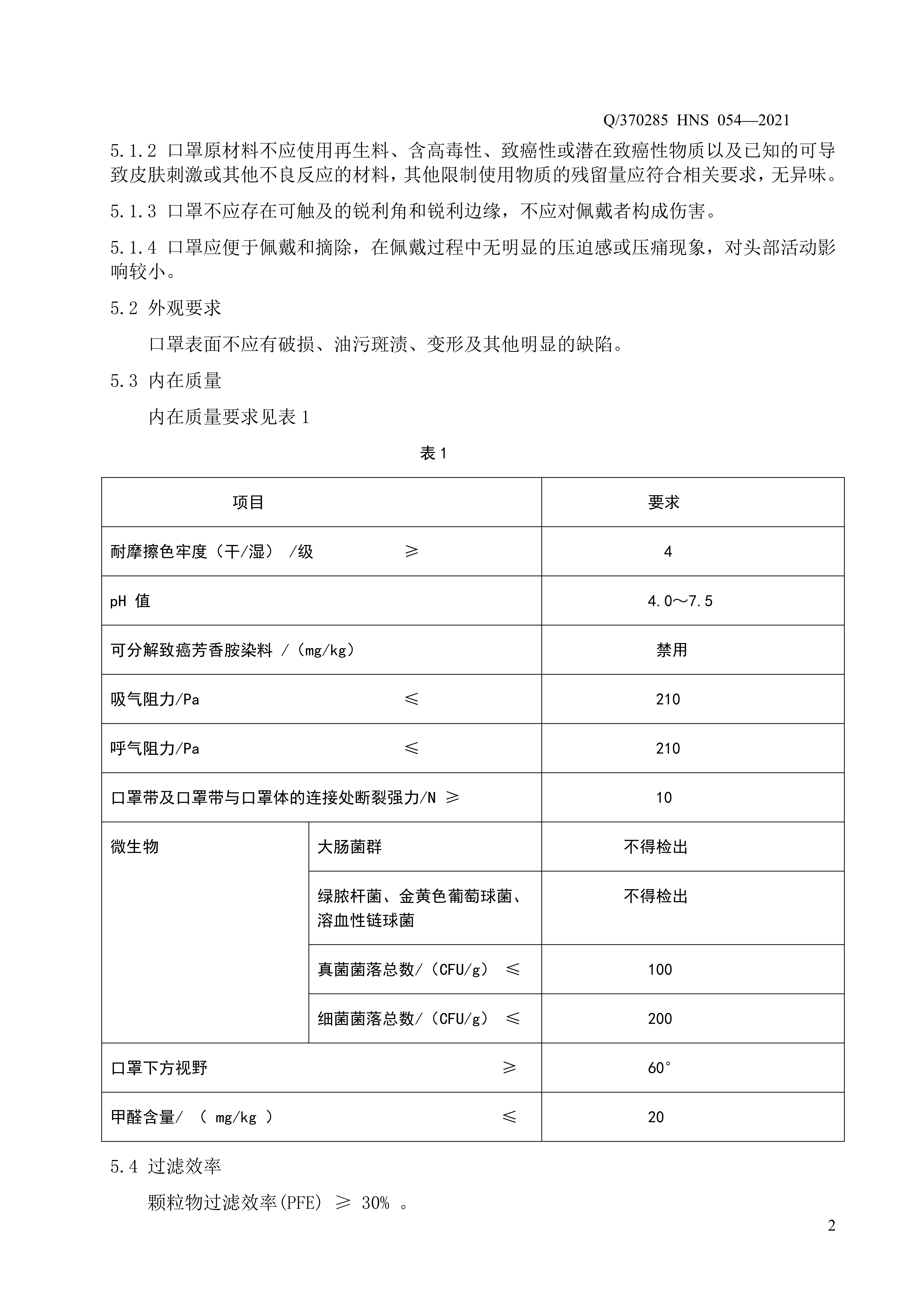 青岛海诺生物工程有限公司企业标准 — 一次性 3D 立体时尚口罩